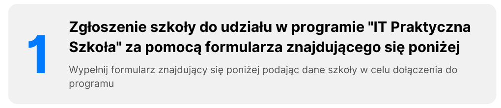 W celu dołączenia do programu "IT Praktyczna Szkoła" prosimy o wypełnienie formularza zgłoszeniowego.